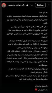 استوری رضا درویش بعد استعفا از مدیریت پرسپولیس