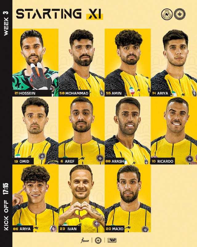سیدحسین حسینی، محمد دانشگر، محمدامین حزباوی، آریا یوسفی، امید نورافکن، عارف حاجی عیدی، آرش رضاوند، ریکاردو آلوز، آریا شفیع دوست، ایوان سانچز و مجید علیاری یازده بازیکنی هستند که با نظر محرم نویدکیا در این دیدار به میدان می روند.