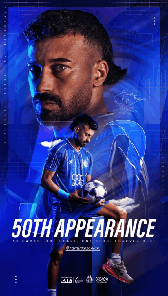در این طرح گرافیکی که در صفحات رسمی باشگاه منتشر شد، تصویر رضاییان با لباس استقلال در کنار عدد ۵۰ طراحی شده است تا یادآور رکورد جدید این مدافع ملیپوش باشد.