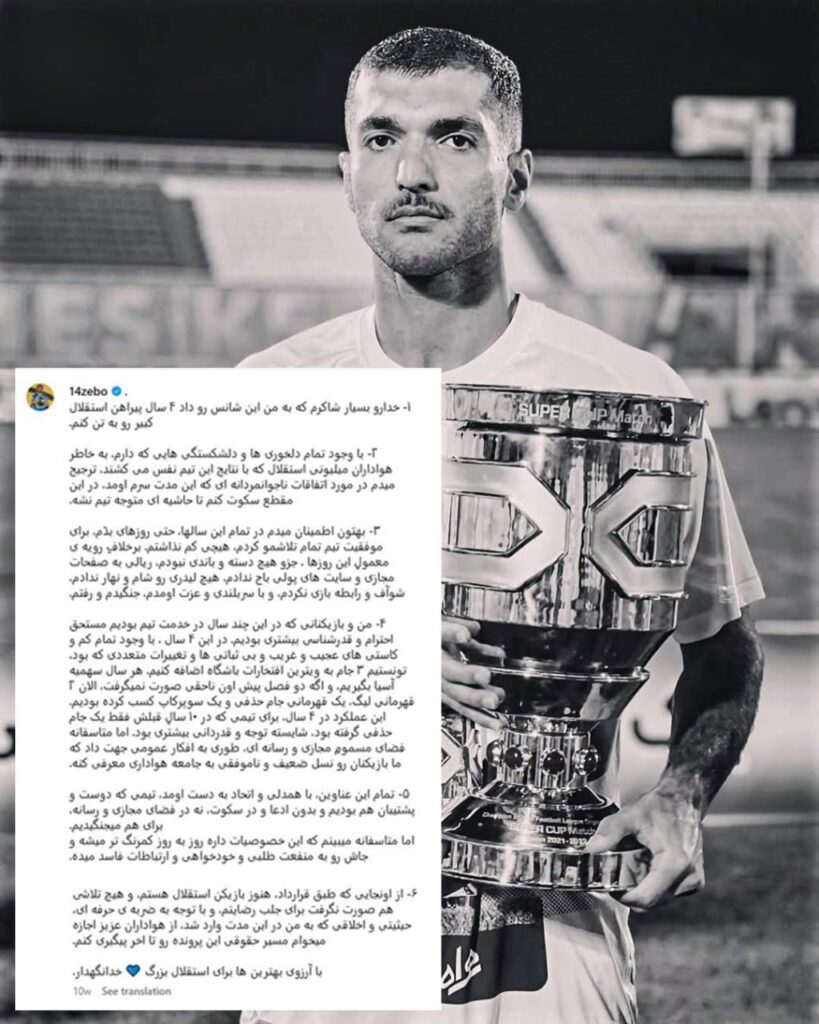 به گزارش هفت ورزشی، پس از پیوستن زبیر نیک نفس، بازیکن سابق استقلال به تیم فجرسپاسی یک پست از این بازیکن با عنوان خداحافظی و تهدید به شکایت از باشگاه استقلال در رسانه ها منتشر شد.