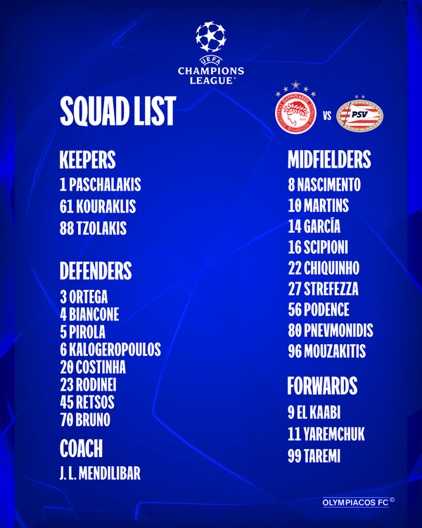 به گزارش هفت ورزشی، تیم فوتبال المپیاکوس یونان امشب در چهارمین دیدار خود از مرحله گروهی لیگ قهرمانان اروپا مقابل آیندهوون هلند صفآرایی میکند.