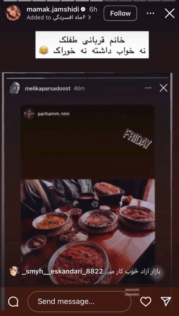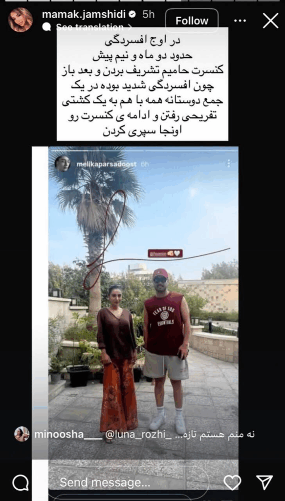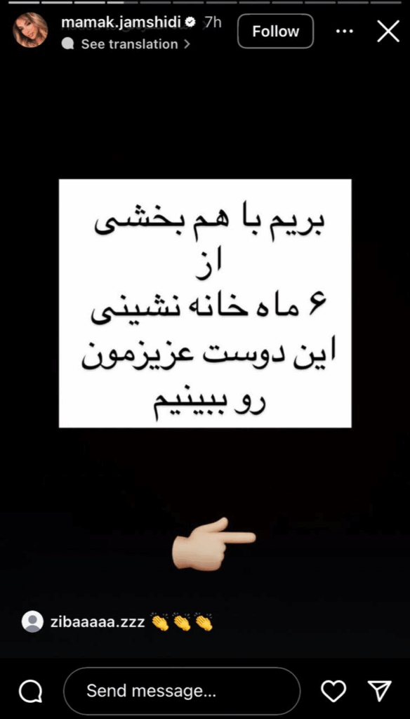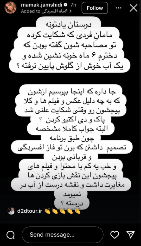 مامک جمشیدی چند استوری اینستاگرامی در این خصوص منتشر کرد که در ادامه استوری های او را می بینید.