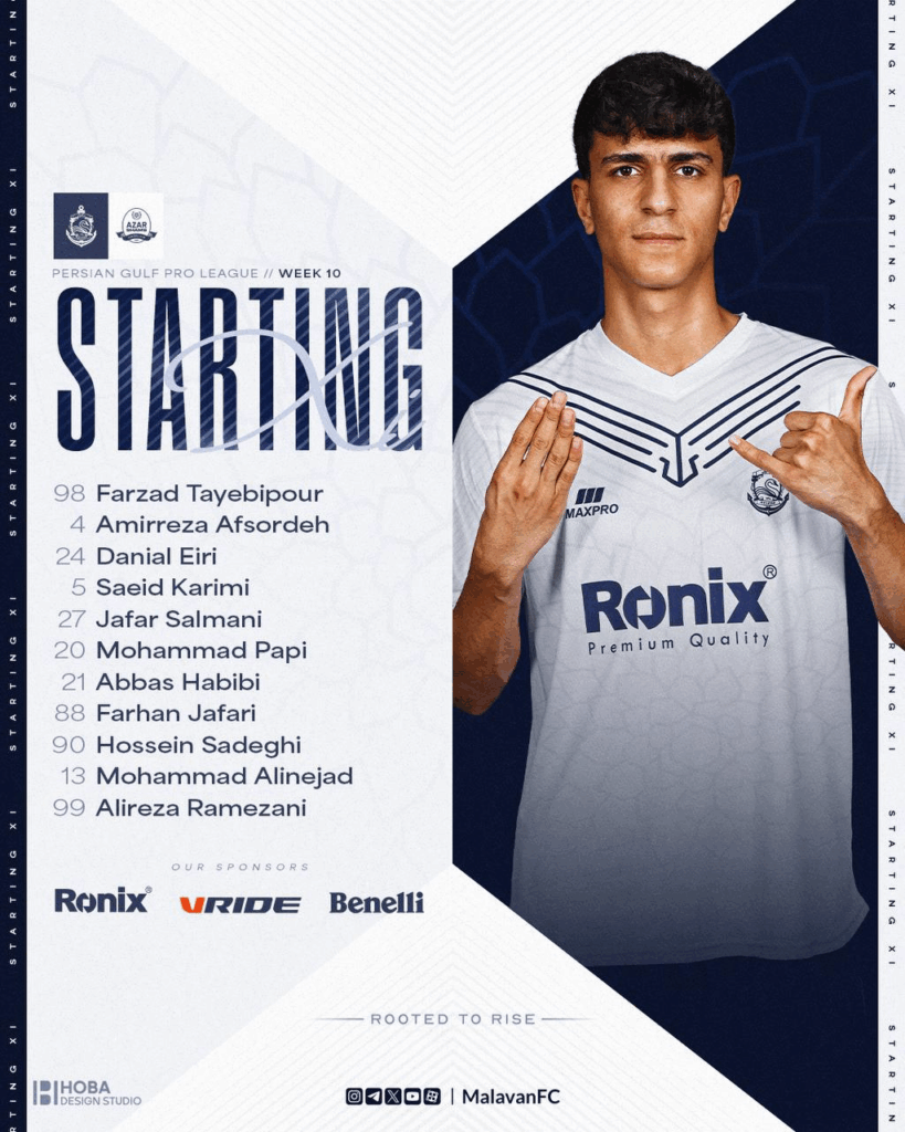 ترکیب ملوان در این مسابقه به این شکل خواهد بود: