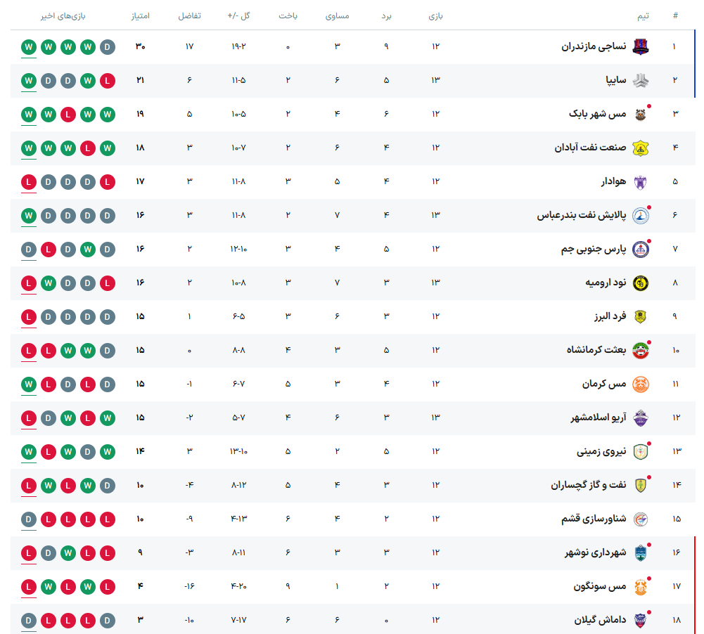 مس شهر بابک – نساجی مازندران- ساعت ۱۵- ورزشگاه سردارسلیمانی شهربابک