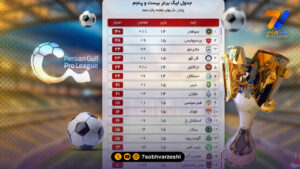 جدول لیگ برتر ایران بعد از پایان هفته پانزدهم