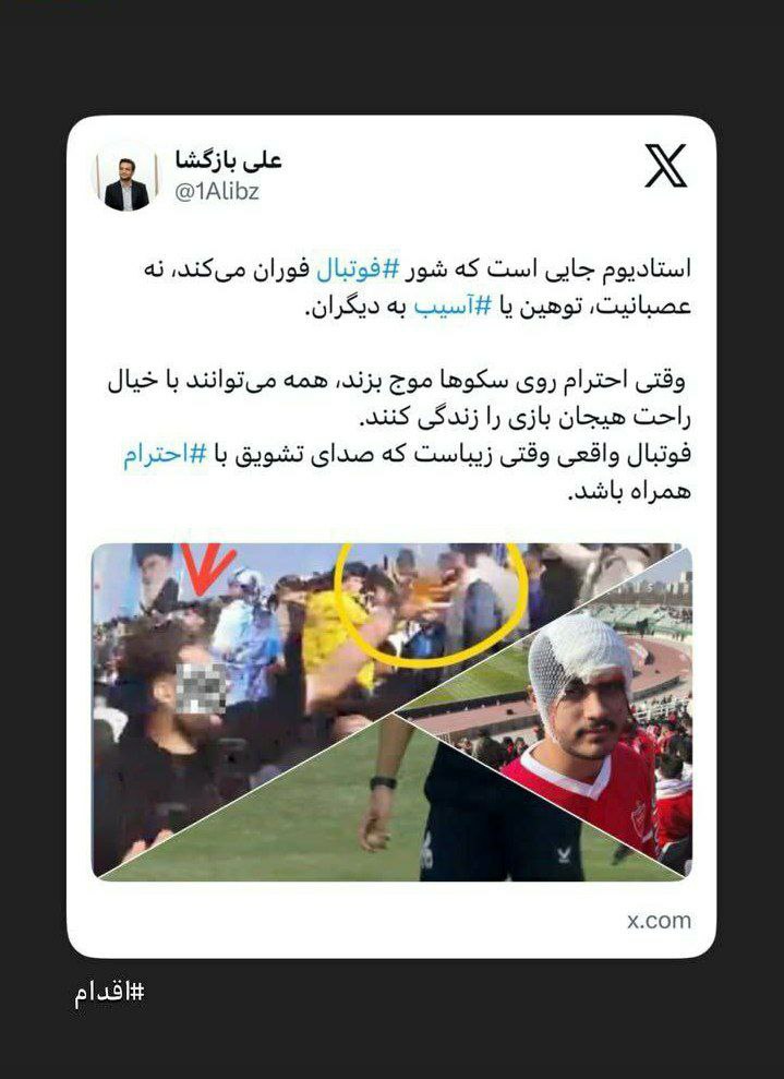 استادیوم جایی است که شور فوتبال فوران میکند، نه عصبانیت، توهین یا آسیب به دیگران.