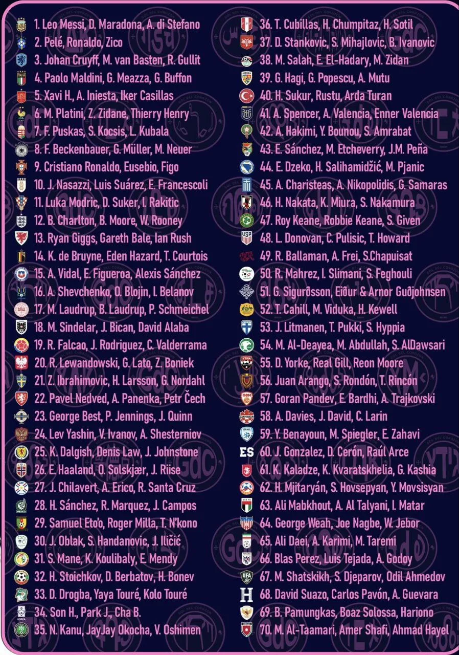 به گزارش هفت ورزشی، فهرست بهترین بازیکنان تاریخ فوتبال کشورهای مختلف منتشر شد که در آن، نام سه اسطوره فوتبال ایران، علی دایی، علی کریمی و مهدی طارمی، در کنار بزرگانی چون پله، مارادونا، زیدان و کریستیانو رونالدو قرار گرفته است.
