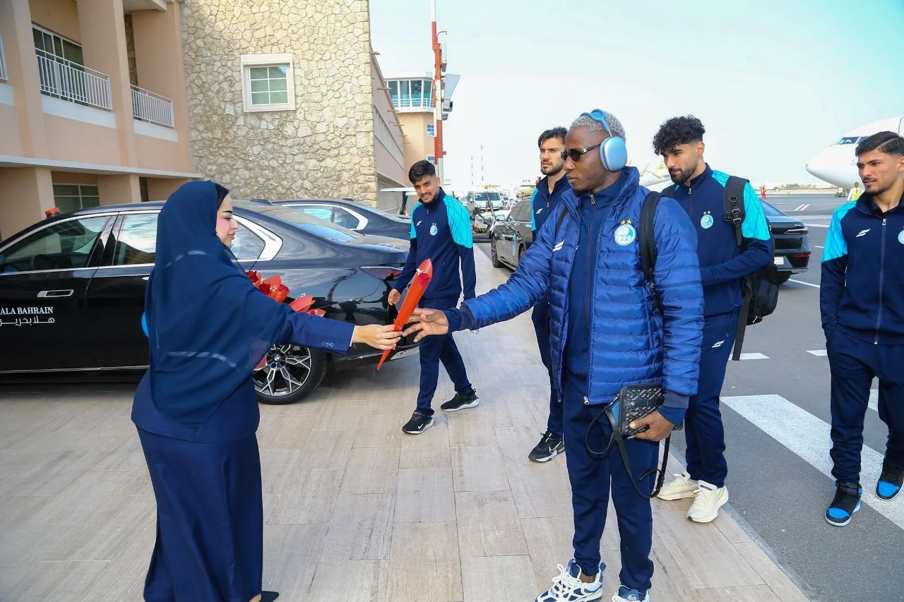اعضای تیم فوتبال استقلال پس از فرود هواپیمای خود در منامه، با استقبال رسمی تیم المحرق روبهرو شدند.