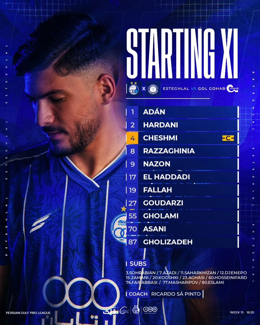 ترکیب استقلال در بازی گل گهر اعلام شد.