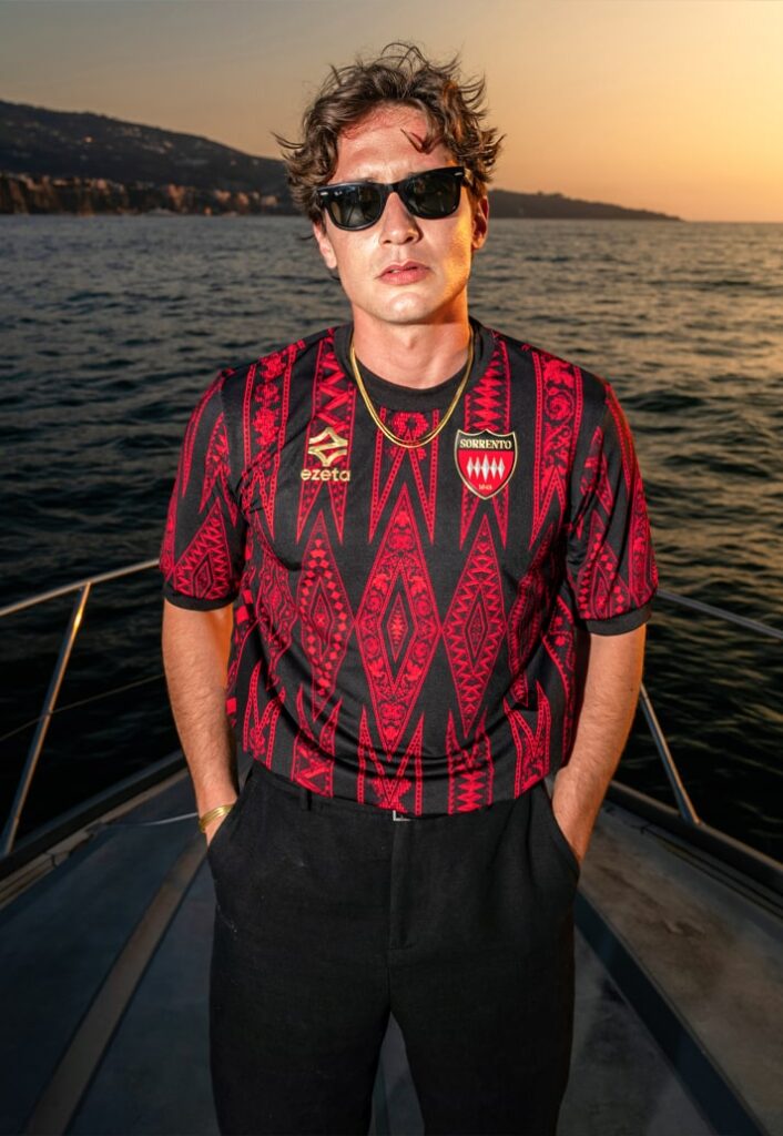 ازهتا اکنون به خاطر طراحیهای تقریباً تجملی خود شناخته شده است و امسال سورنتو با پیراهن خانگیای که شایسته افتخار میلان است، بهرهمند شد. راهراههای قرمز و مشکی که هویت اصلی سورنتو هستند، با الگویی که هنر قدیمی معرقکاری ناپلی را ارج مینهد، برجسته شدهاند.