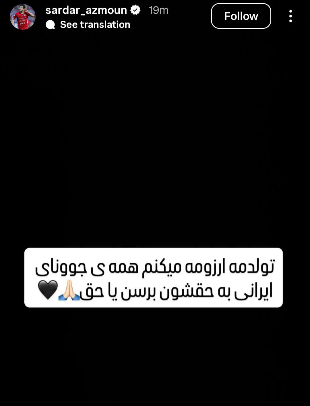 تولدمه، آرزو می کنم همه جوونای ایرانی به حقشون برسن، یاحق…