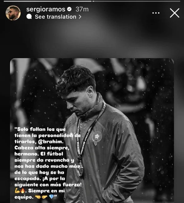 سرخیو راموس پس از از دست رفتن پنالتی براهیم دیاز در فینال جام ملتهای آفریقا ۲۰۲۵، با پیامی حمایتآمیز از هافبک مراکشی پشتیبانی کرد.