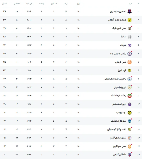 سایپا (28) هوادار (26) و پارس جنوبی جم و مس کرمان (هر دو با 25 امتیاز) در تعقیب مدعیان اصلی صعود هستند.