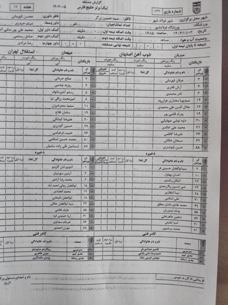 اخطار: صالح حردانی و رستم آشورماتوف (استقلال) سبحان خاقانی و نیما انتظاری (ذوب آهن)