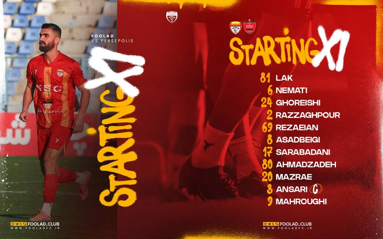 ترکیب تیم فوتبال فولاد مقابل پرسپولیس اعلام شد.