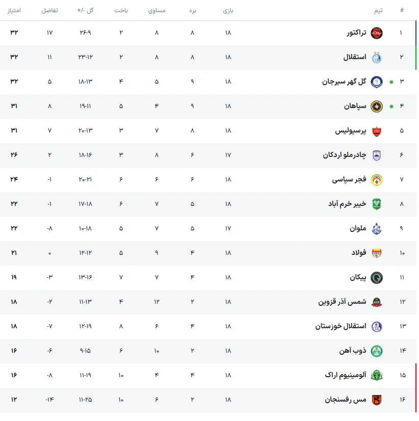 وضعیت جدول رده بندی لیگ برتر بعد از این بازی را مشاهده می کنید. همچنین رتبه سپاهان و گل گهر با توجه به نتیجه دوم تیم تا پایان نیمه اول بازی که گل گهر سپاهان را یک بر صفر شکست داده، محاسبه شده است.