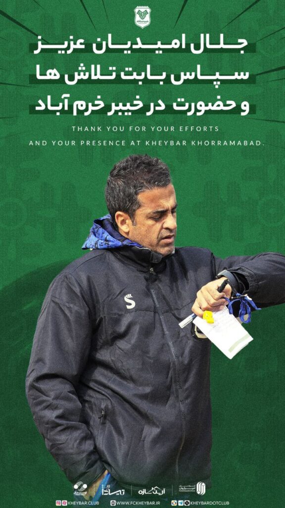 امروز خیبر خرم آباد با انتشار پوستری برای جلال امیدیان آرزوی موفقیت کرد.