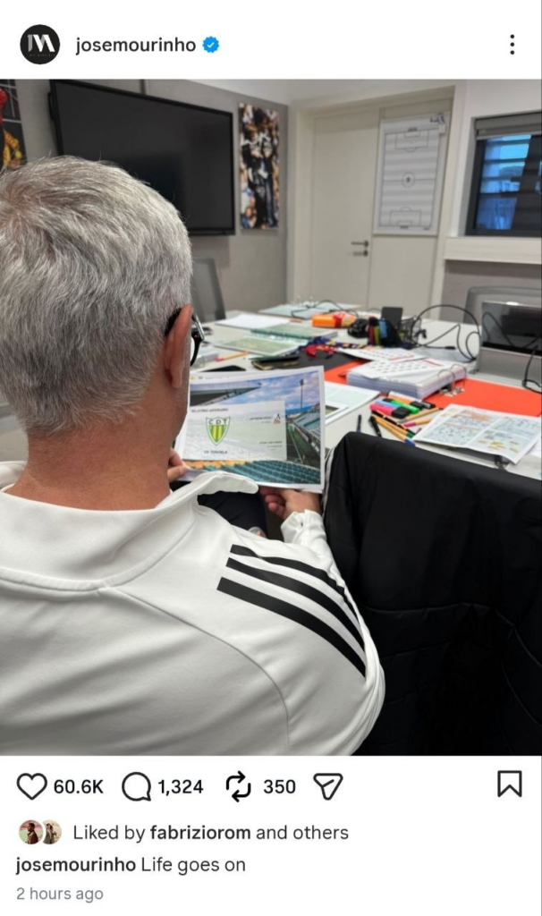پس از اعلام قرعه، مورینیو واکنشی سریع اما معنادار نشان داد. او با انتشار عکسی در صفحه اینستاگرام خود، تصویری از حضورش در دفتر کار و در حال آنالیز توندلا، حریف بعدی بنفیکا در لیگ پرتغال، منتشر کرد و روی آن نوشت: «زندگی ادامه دارد.»