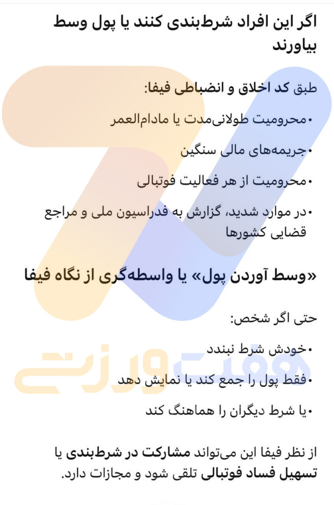 در قوانین فیفا آمده حتی اگر کسی خودش شرط نبندد اما فقط پول شرط بندی را جمع کند و یا آن را نشان بدهد با محرومیت روبرو می شود آن وقت بازکن استقلال در روز روشن شرط بسته و شرط بندی خودش را هم تبلیغ کرده است.