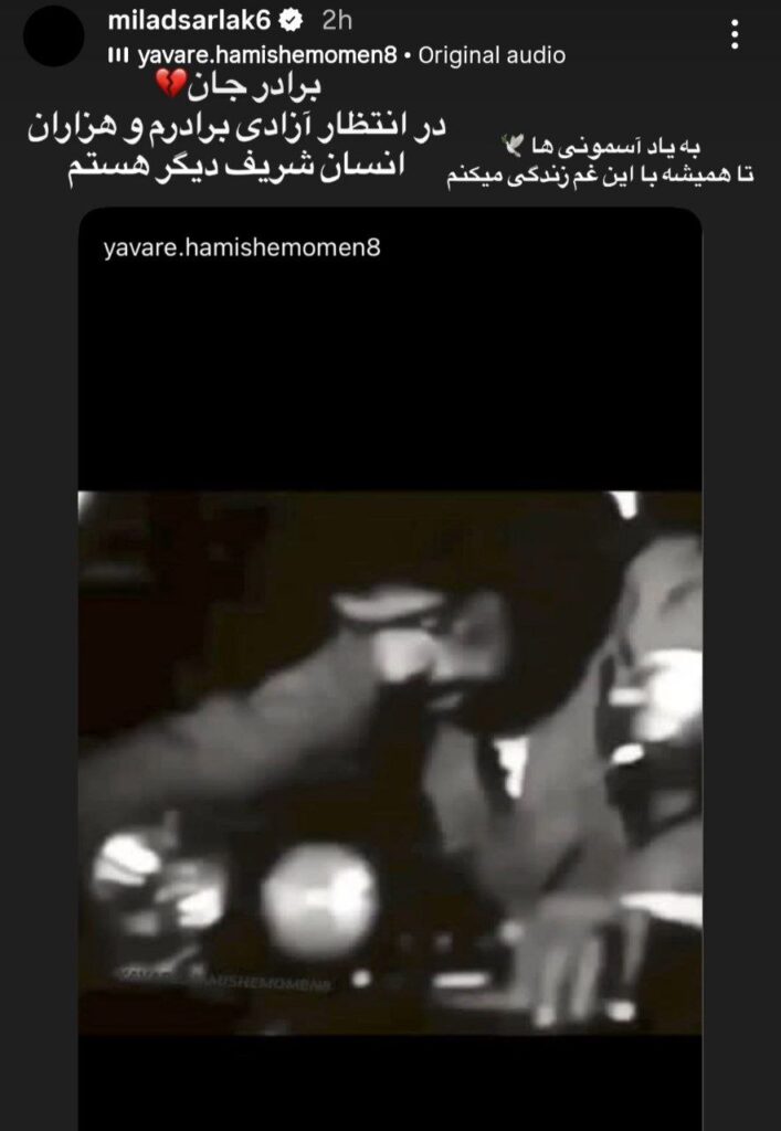 به گزارش هفت ورزشی، میلاد سرلک، ستاره پرسپولیس ساعتی قبل با انتشار استوری در اینستاگرام، از بازداشت برادرش در نا آرامی های اخیر خبر داد.