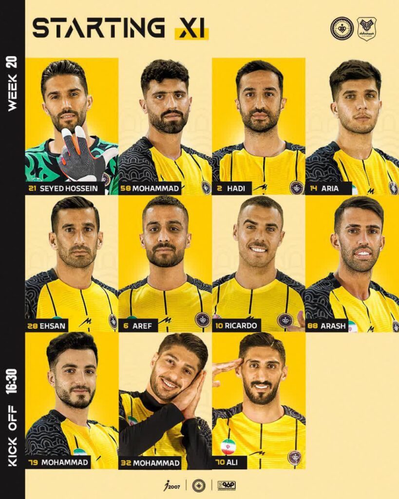 سیدحسین حسینی، محمد دانشگر، هادی محمدی، آریا یوسفی، احسان حاج صفی، عارف حاجی عیدی، ریکاردو آلوز، آرش رضاوند، محمد مهدی لطفی، محمدمهدی محبی و علی خدادادی.