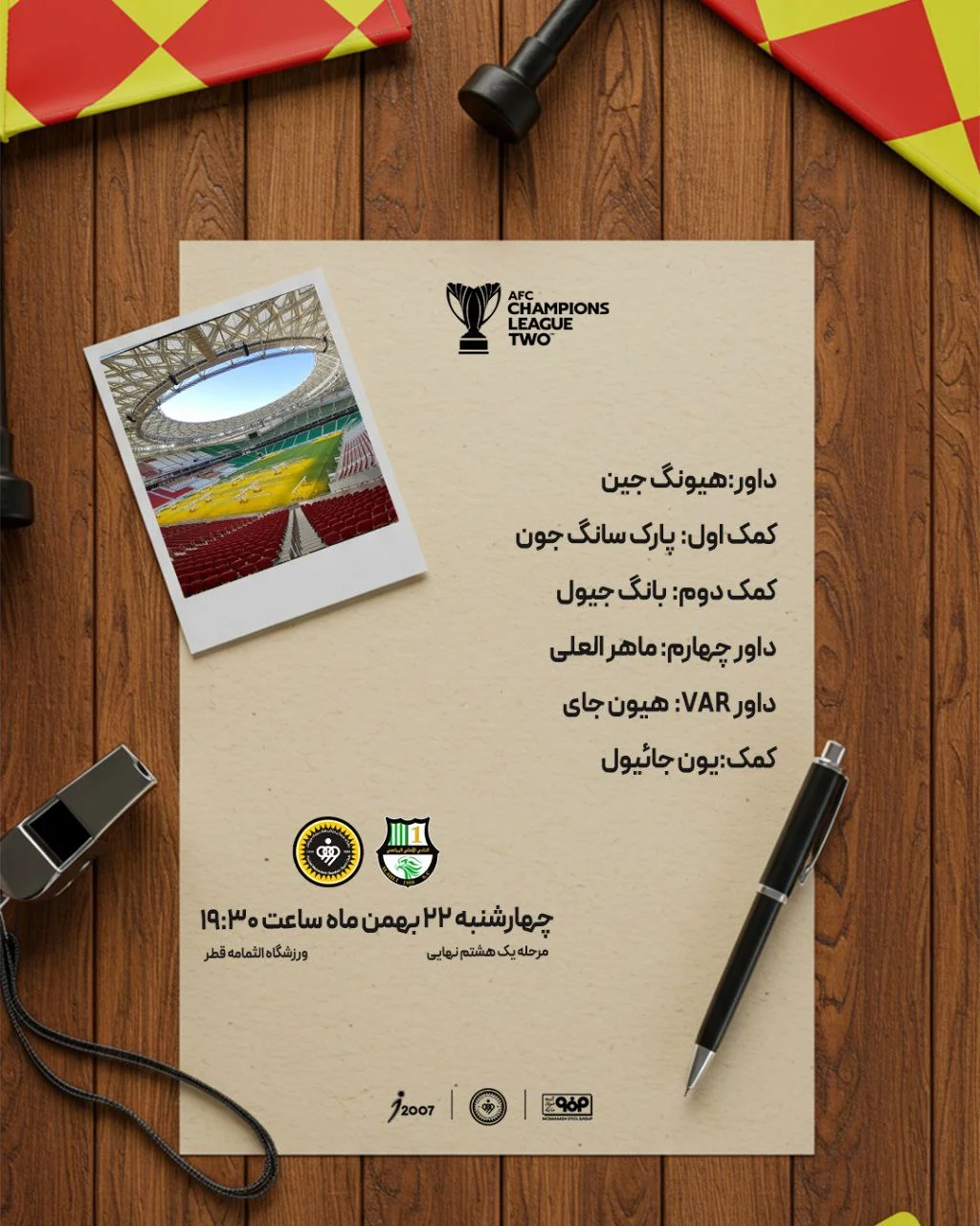به گزارش هفت ورزشی، تیم داوری دیدار تیم های سپاهان و الاهلی دوحه در رقابت های لیگ قهرمانان آسیا 2 مشخص شد.