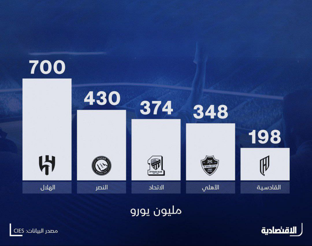 براساس این گزارش، الهلال با ثبت ۷۰۰ میلیون یورو زیان، در صدر فهرست باشگاههای ضررده عربستان در پنج سال اخیر قرار دارد. پس از آن، النصر با ۴۳۰ میلیون یورو، الاتحاد با ۳۷۴ میلیون یورو، الاهلی با ۳۴۸ میلیون یورو و القادسیه با ۱۹۸ میلیون یورو در رتبههای بعدی قرار گرفتهاند.