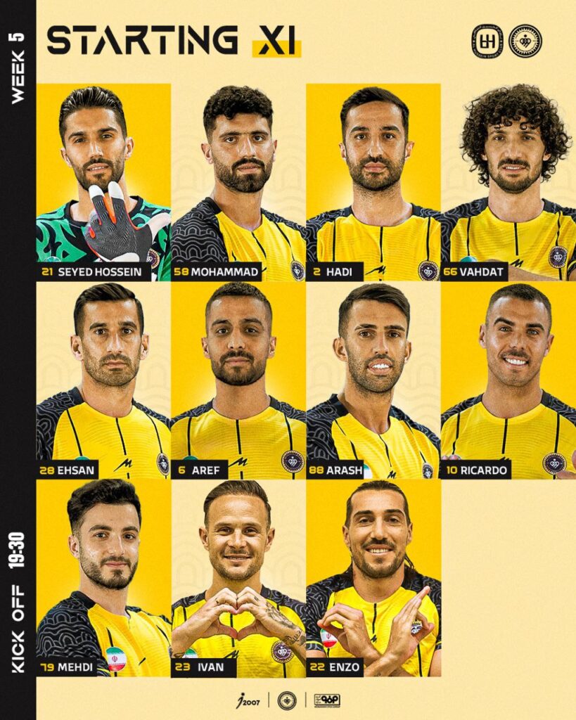 سیدحسین حسینی، هادی محمدی، محمد دانشگر، حنانوف، احسان حاج صفی، عارف حاج عیدی، محمدمهدی لطفی، آرش رضاوند، ریکاردو آلوز، ایوان سانچس و انزو.