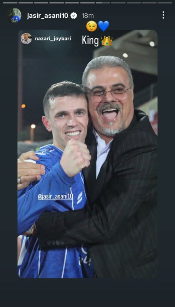 عضو هیات مدیره استقلال عکس دو نفره خود کنار آسانی را استوری کرد اما از همه جالبتر حرکت آسانی بود که استوری مدیرعامل سابق استقلال را ری استوری کرد و به او لقب پادشاه داد!