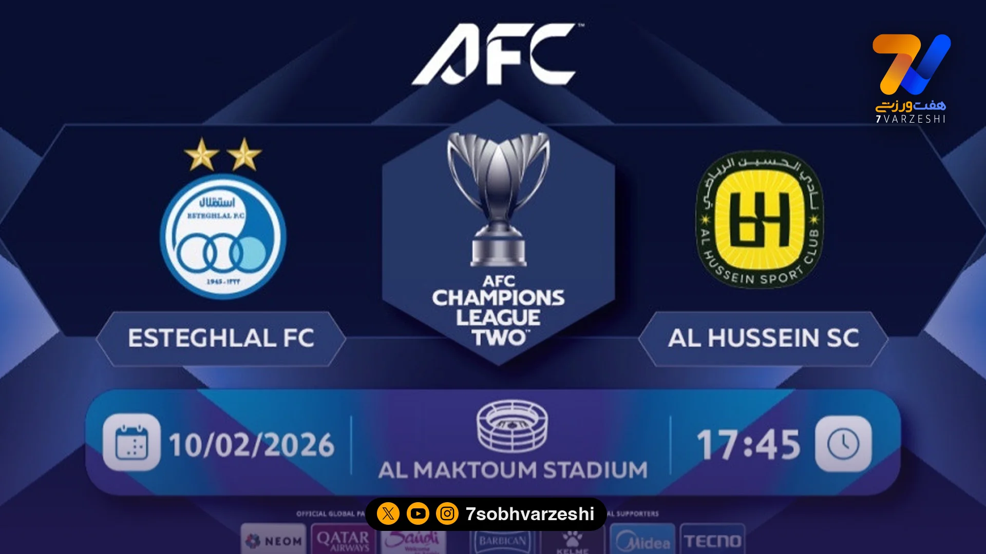 تیم فوتبال استقلال ایران در دیدار رفت مرحله یک هشتم نهایی لیگ قهرمانان آسیا ۲، روز سهشنبه ۲۱ بهمن ۱۴۰۴ (۱۰ فوریه ۲۰۲۶) از ساعت ۱۷:۱۵ به وقت ایران در ورزشگاه آلمکتوم دبی به مصاف تیم الحسین اردن میرود. این مسابقه نخستین تقابل رسمی دو تیم در رقابتهای آسیایی محسوب میشود و به صورت رفت و برگشت برگزار خواهد شد.