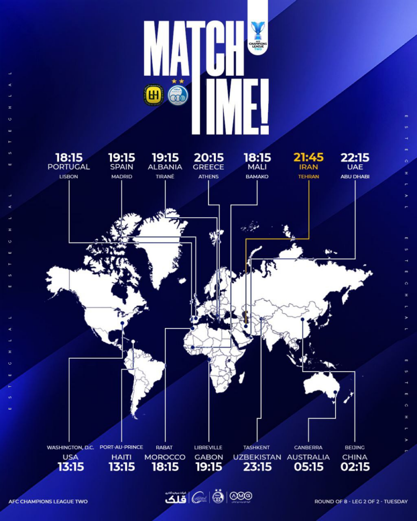 بر اساس اعلام رسانه رسمی باشگاه، زمان پخش مسابقه بسته به منطقه زمانی کشورها متفاوت خواهد بود و علاقهمندان در سراسر جهان میتوانند بازی را زنده تماشا کنند.