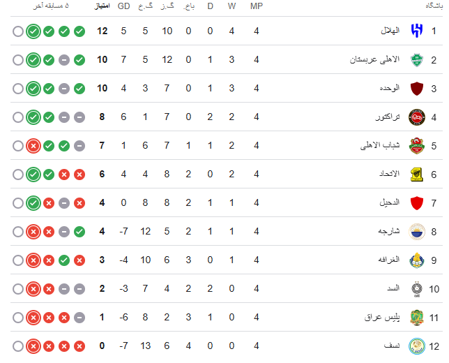 جدول لیگ نخبگان آسیا پس از پایان هفته چهارم: