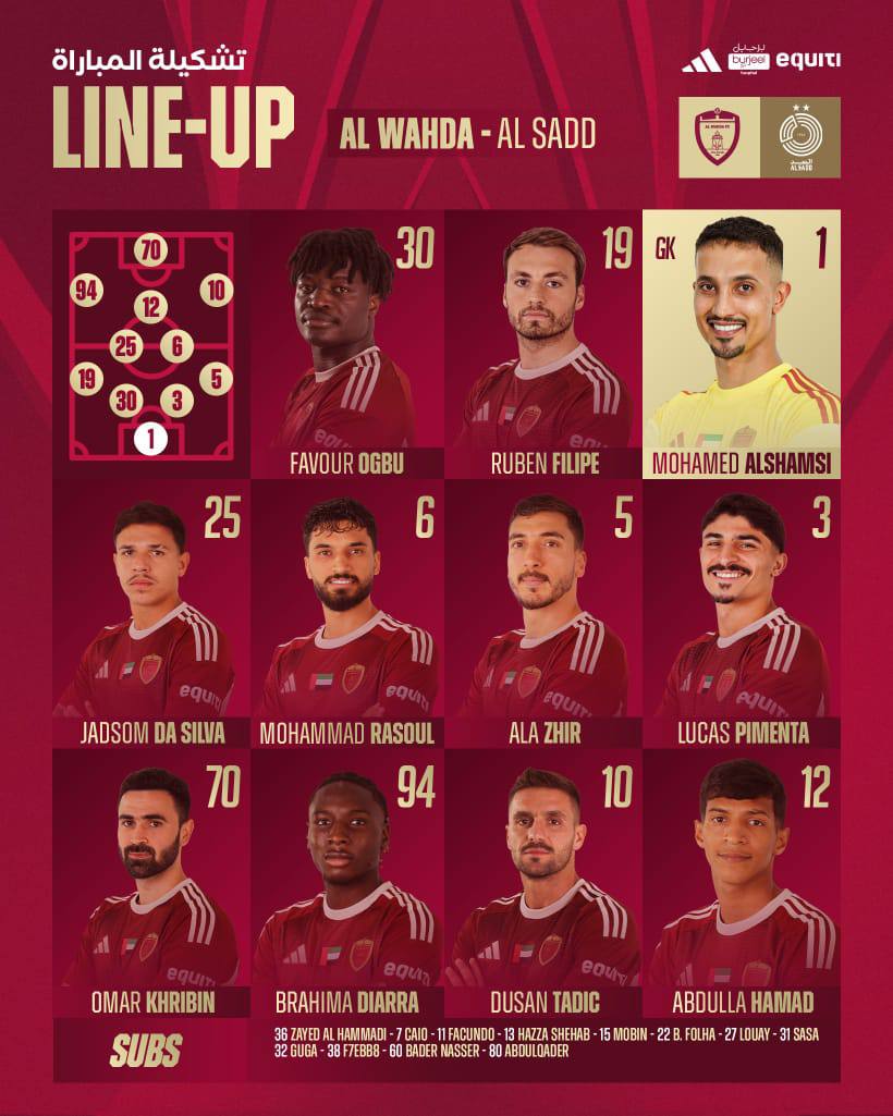 محمد قربانی که در چهار بازی قبلی الوحده در این رقابتها بهصورت ثابت به میدان رفته بود، امشب نیز با تصمیم ژوزه مورایس در ترکیب اصلی این تیم حضور دارد.