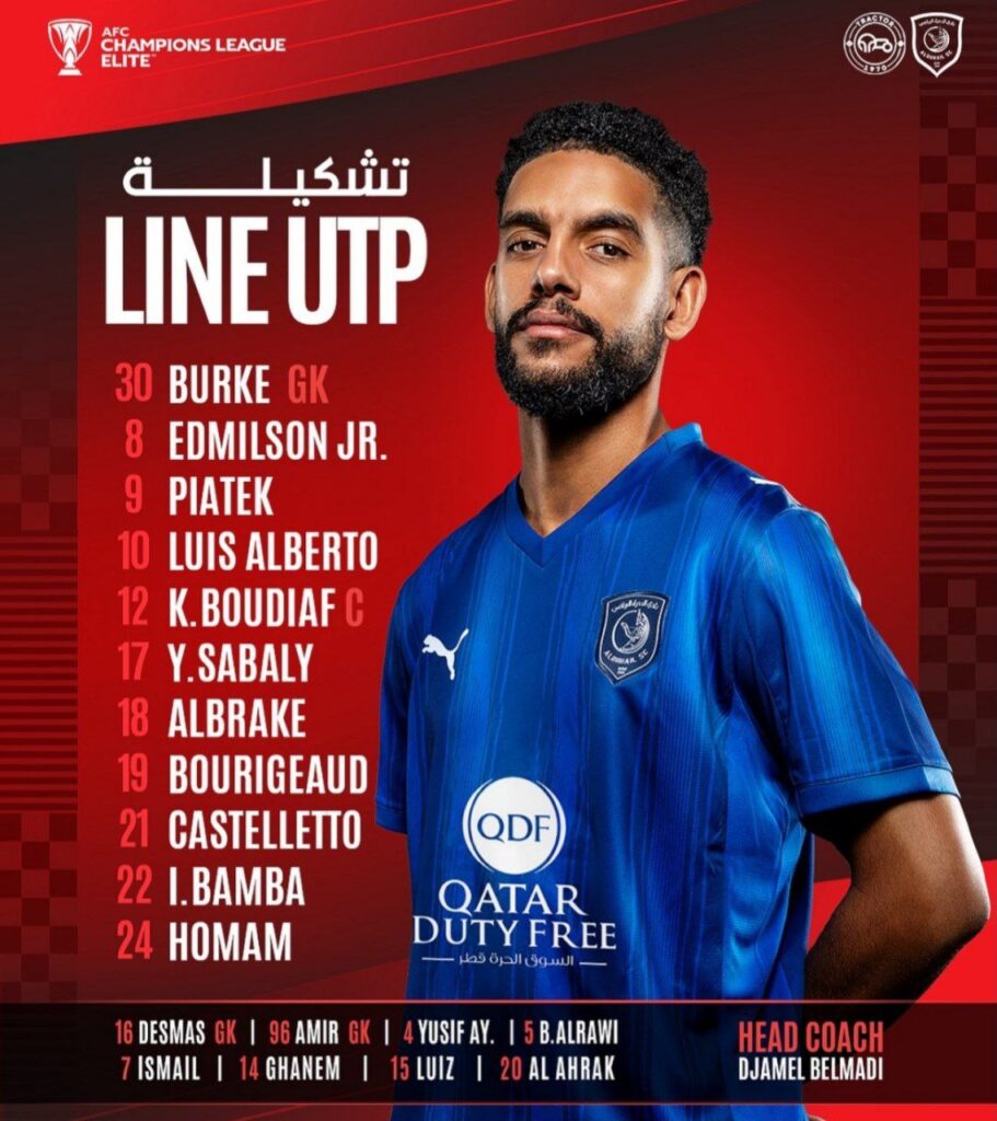 ترکیب تیم الدحیل قطر برای دیدار امشب مقابل تراکتور ایران منتشر شد.