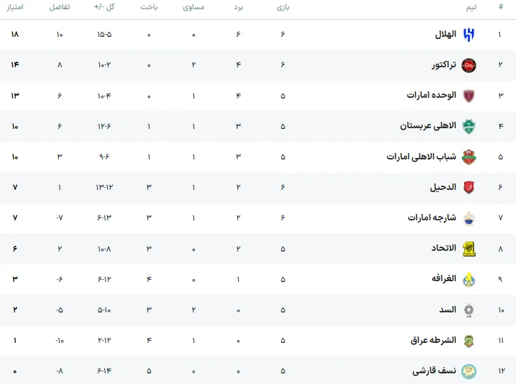 با این نتایج، تراکتور با پیروزی مقابل الدحیل شرایط خود را در جدول بهبود بخشید و الهلال نیز با تداوم روند موفق خود، صدرنشینیاش را تثبیت کرد.