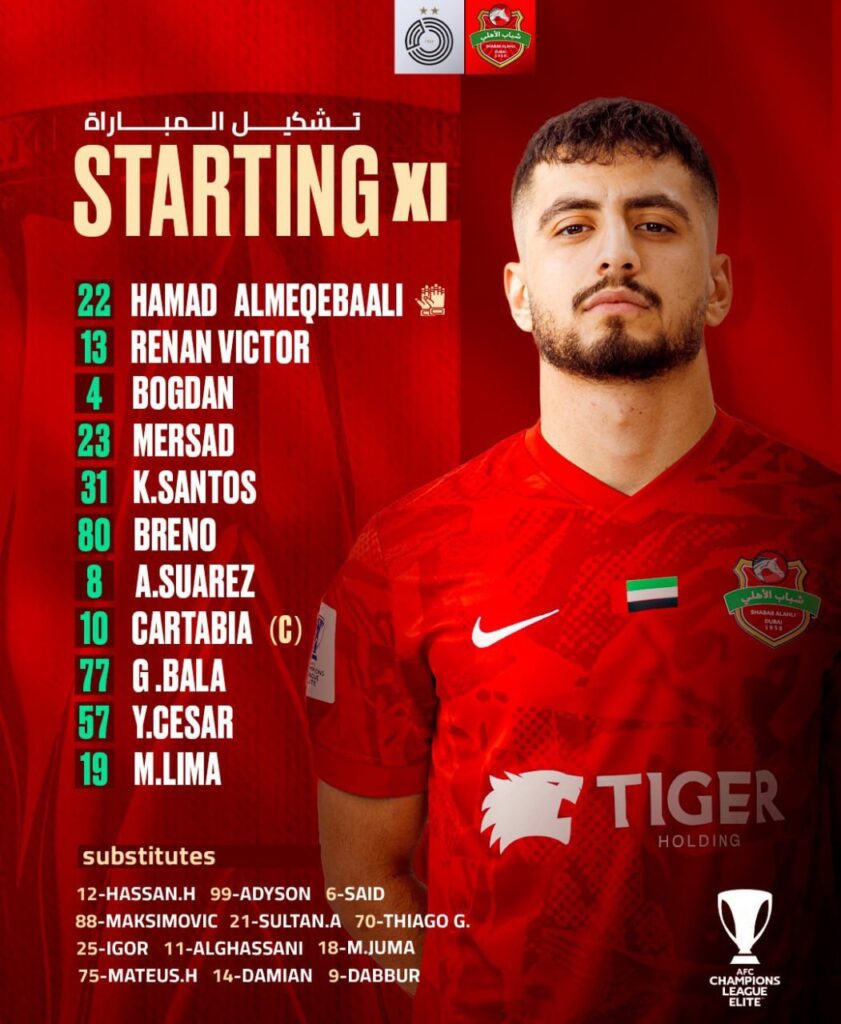 این بازیکن جوان که در فصل جاری تنها یک بازی در لیگ امارات انجام داده، در آخرین دیدار رسمی شبابالاهلی در جام بانک اسلامی ابوظبی مقابل النصر نیز از ابتدا به میدان رفته بود و امشب هم نقش مهمی در سمت چپ خط دفاعی تیمش ایفا خواهد کرد.