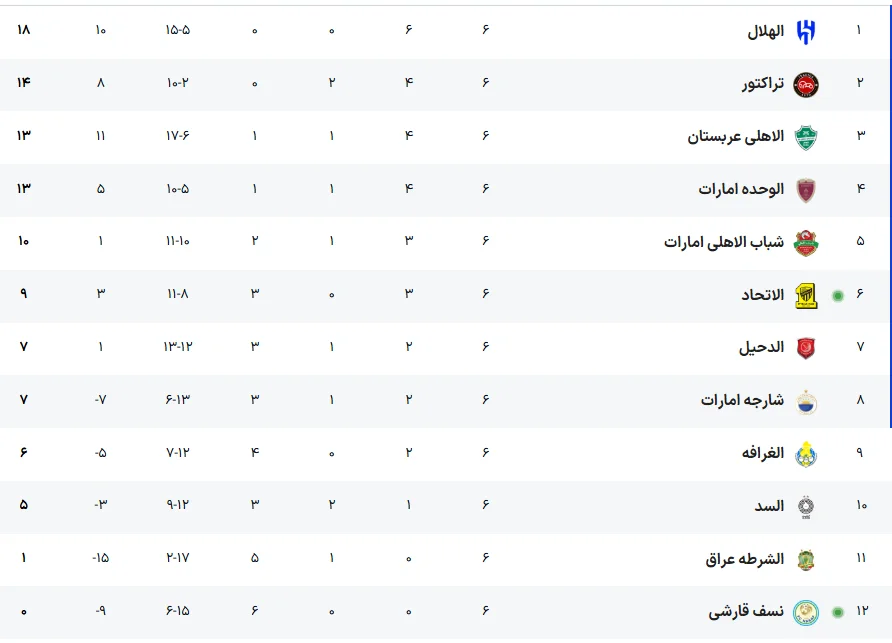 جدول لیگ نخبگان پس از پایان هفته ششم