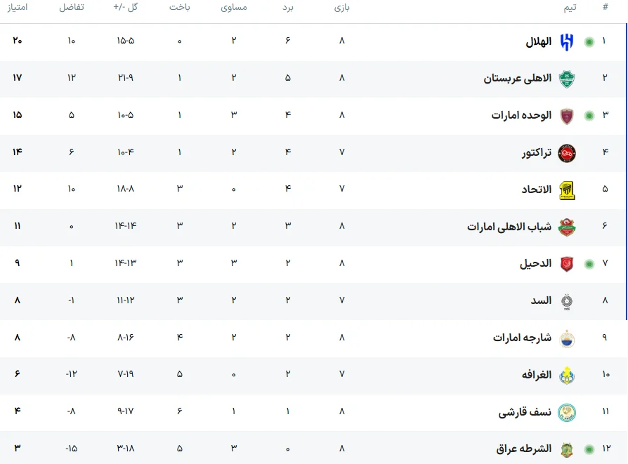 بازی الوحده و الهلال از دقایقی قبل آغاز شد و این بازی اگر با همین نتیجه مساوی تمام شود تراکتور به رتبه چهارم سقوط می کند البته موقتا!