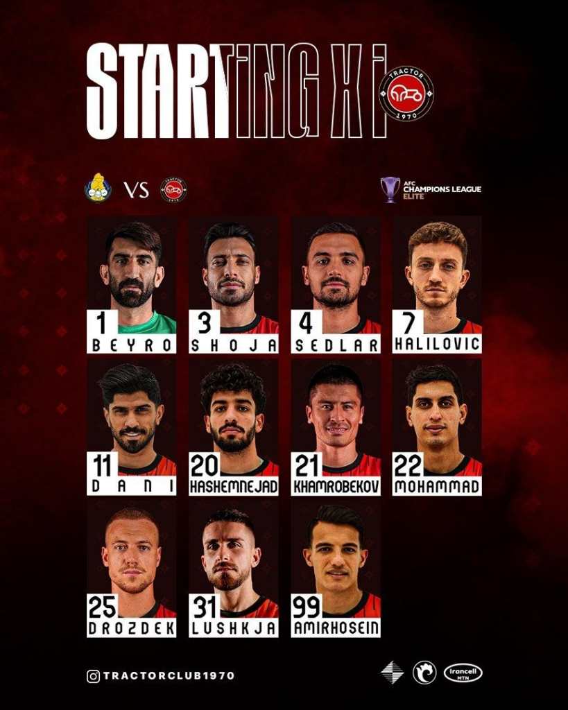 یازده نفر منتخب تراکتور برای این دیدار به شرح زیر است؛