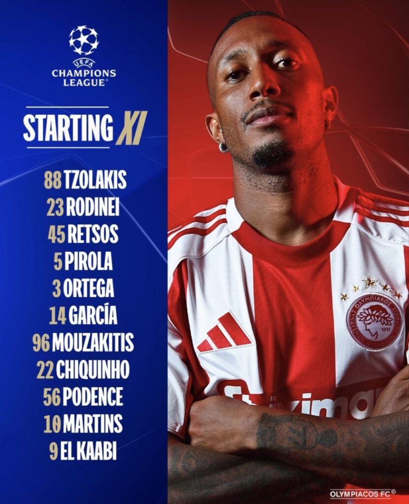 در ترکیب اعلامشده از سوی باشگاه المپیاکوس، مهدی طارمی، مهاجم ملیپوش ایرانی، در این مسابقه کار را از روی نیمکت آغاز میکند.