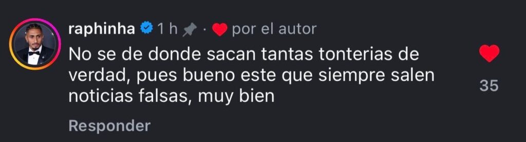 اما با شدت گرفتن این گمانهزنیها، رافینیا شخصاً وارد ماجرا شد و در واکنش به کامنت یکی از کاربران در اینستاگرام، به شکلی صریح شایعات را تکذیب کرد. او نوشت: