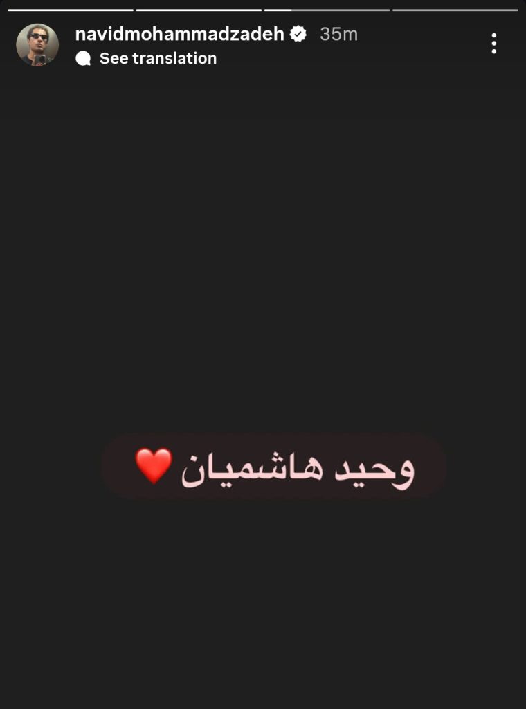 به گزارش هفت ورزشی، در میان نقدها درباره نحوه جدایی وحید هاشمیان از کادر فنی پرسپولیس، نوید محمدزاده، بازیگر مطرح سینمای ایران، با یک استوری معنادار از او حمایت کرد.