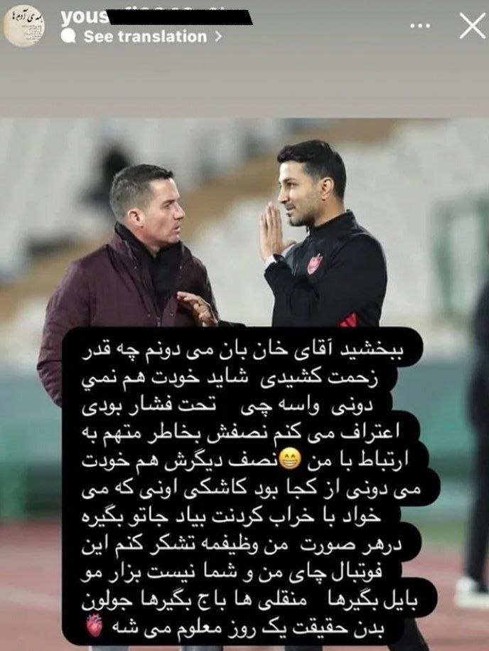هوادار متمول پرسپولیس که طی روزهای اخیر جنجال زیادی در فضای مجازی ایجاد کرده بود، پس از جدایی مهرداد خانبان، استوری جدیدی منتشر کرد.
