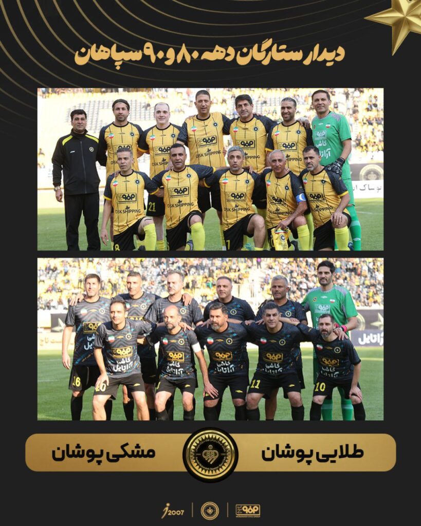 به گزارش هفت ورزشی، در دیداری نمادین و پر از خاطره، ستارگان دهه ۸۰ و ۹۰ سپاهان در قالب دو تیم طلاییپوشان و مشکیپوشان مقابل هم قرار گرفتند. این بازی دوستانه در فضایی صمیمی برگزار شد و در نهایت طلاییپوشان با نتیجه ۳ بر ۲ به پیروزی رسیدند.