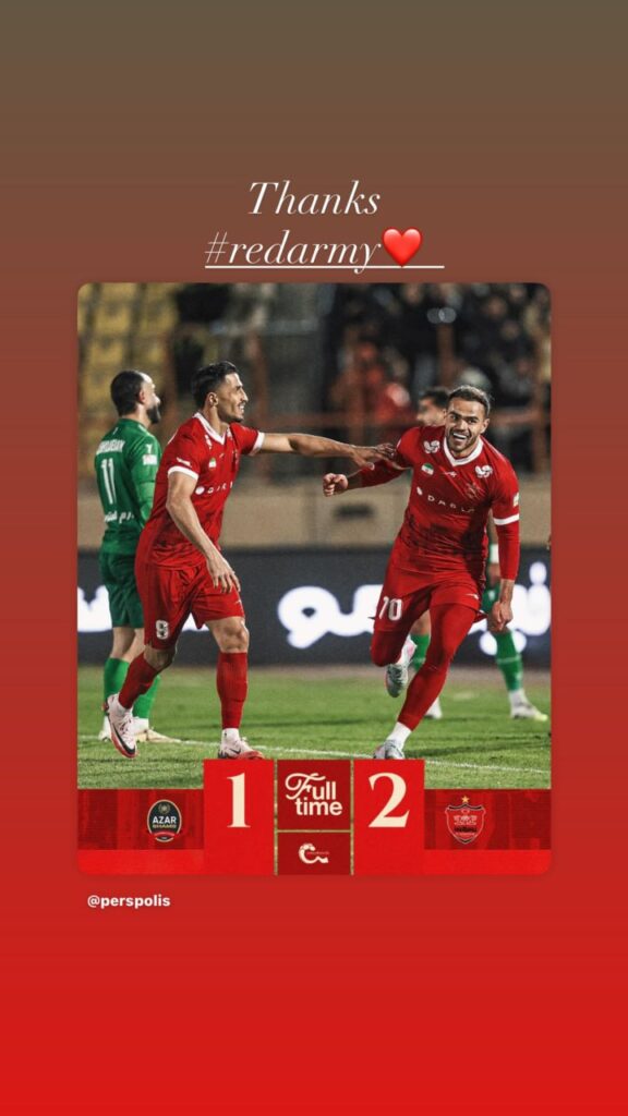 اوسمار ویرا، سرمربی برزیلی سرخها، پس از این برد در استوری اینستاگرامش نوشت: