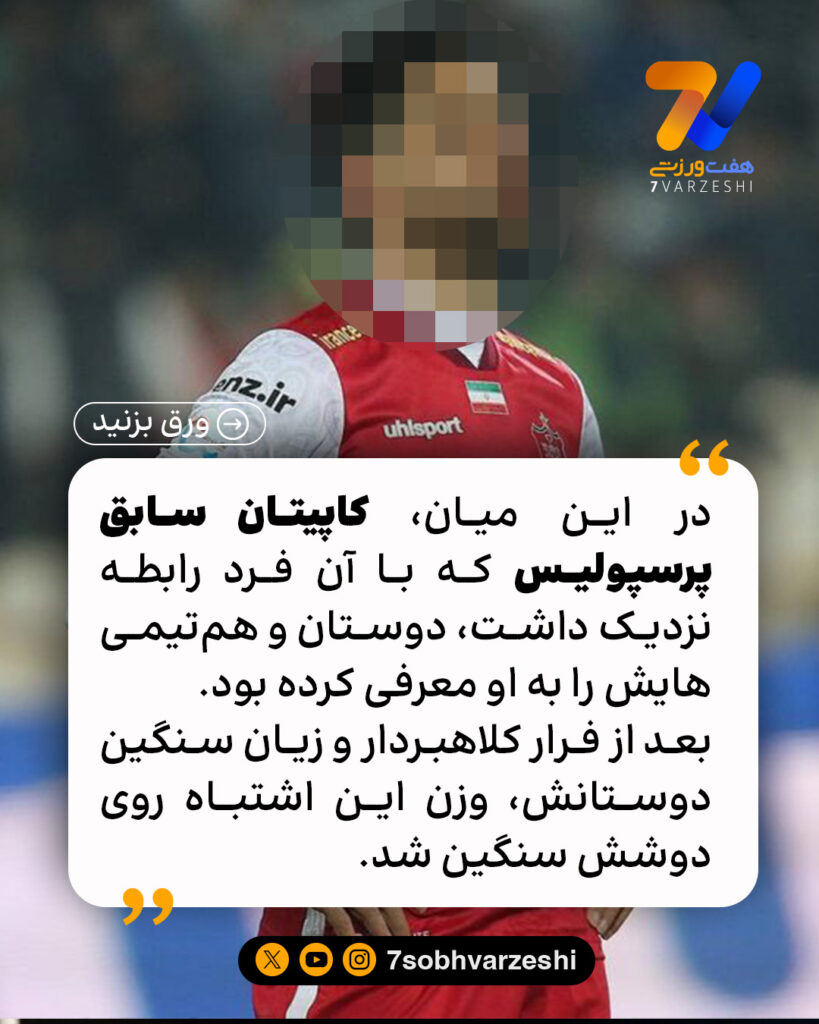 در این ماجرا، کاپیتان سابق پرسپولیس و بازیکن پیشین تیم ملی به عنوان کسی که ارتباط نزدیکی با اون فرد داشته، مسئولیت سنگینی رو احساس میکنه.