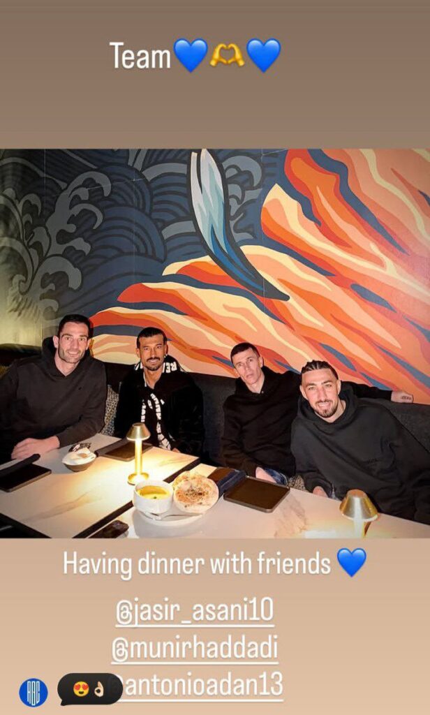 در این تصویر، او کنار منیر الحدادی، یاسر آسانی و آنتونیو آدان دیده میشود؛ سه ستاره خارجی که این روزها نقش مهمی در ترکیب آبیها دارند.