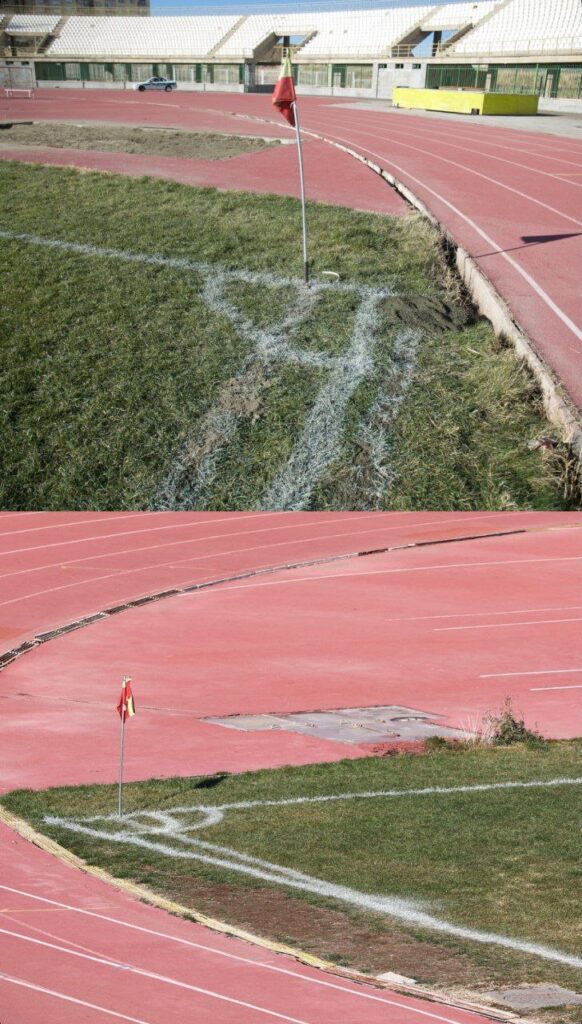 باشگاه خاتون بم با انتشار تصاویری، وضعیت نامناسب چمن و خطکشی زمین را دلیل اصلی لغو مسابقه عنوان کرد؛ جایی که وجود چند خط موازی، جانمایی نادرست نقطه کرنرها و خط میانی کج و غیراستاندارد، شرایط را غیرقابل قبول کرده بود. علاوه بر این، نبود آمبولانس کنار زمین نیز مانع احراز شرایط لازم برای برگزاری مسابقه شد.