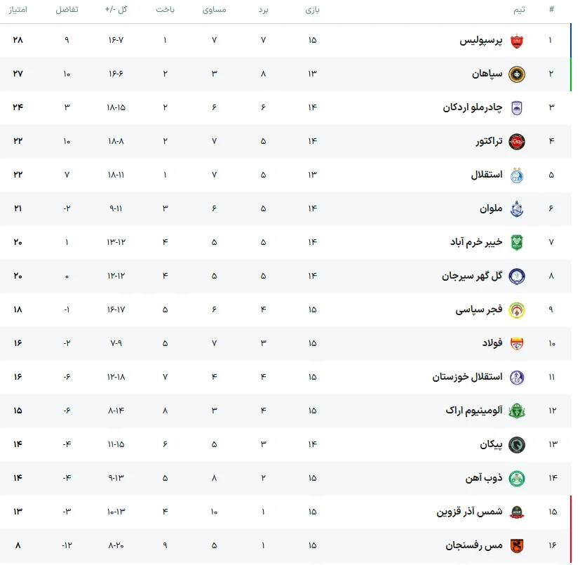 با این نتایج، پرسپولیس با ۲۸ امتیاز و در حالی که دو بازی بیشتر از سپاهان ۲۷ امتیازی انجام داده، در صدر جدول لیگ برتر قرار گرفت.