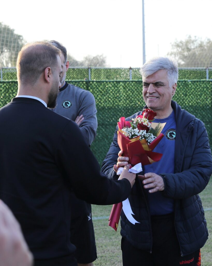بازیکنان و کادر فنی پیکان در حاشیه تمرین خود در جزیره کیش، به مناسبت روز پدر با اقدامی صمیمی از نقی نائیجی مدیرعامل باشگاه تقدیر کردند.